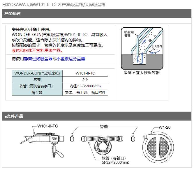 日本OSAWA大澤W101-II-TC-20氣動(dòng)吸塵槍
