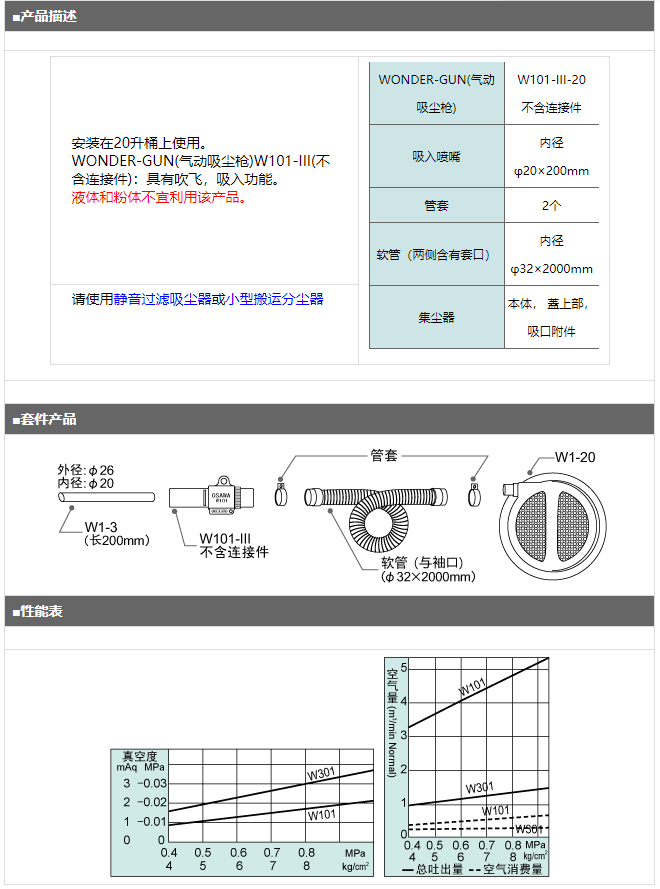 日本OSAWA大澤W101-III-20氣動(dòng)吸塵槍