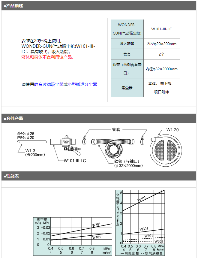日本OSAWA大澤W101-III-LC-20氣動(dòng)吸塵槍