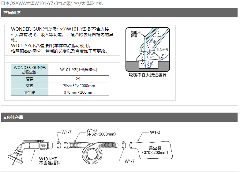 日本OSAWA大澤W101-YZ-B氣動(dòng)吸塵槍