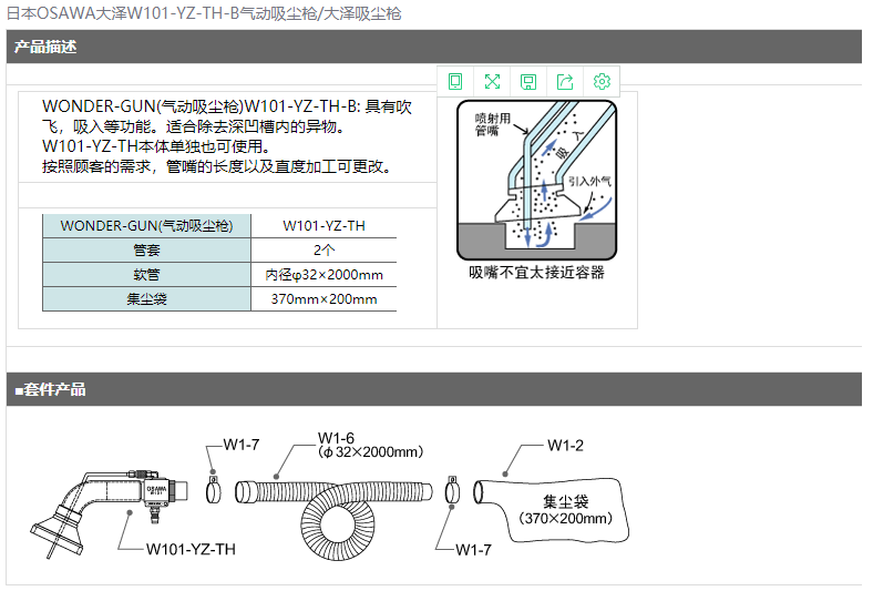 日本OSAWA大澤W101-YZ-TH-B氣動吸塵槍