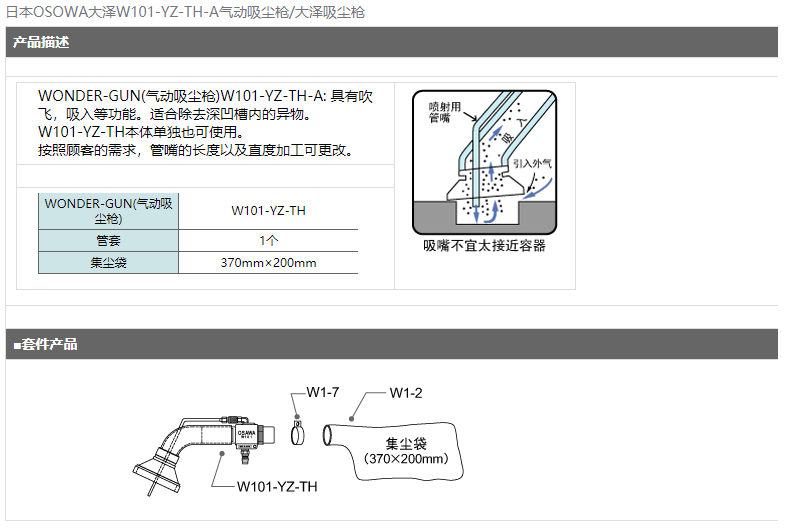 日本OSAWA大澤W101-YZ-TH-A氣動(dòng)吸塵槍