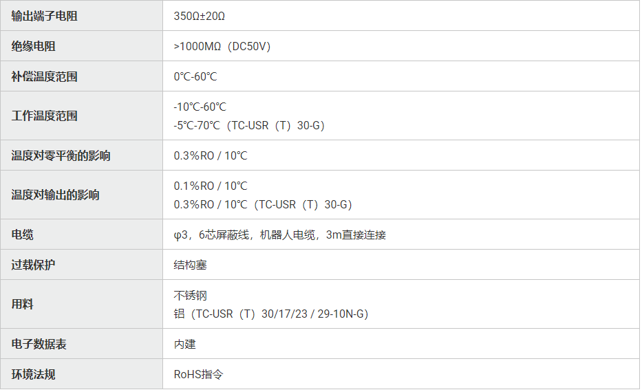 產(chǎn)品簡介: 日本TEAC TC-USR(T)-G3壓縮稱重傳感器TC系列 機(jī)械手電纜 TC-USR(T)-G3