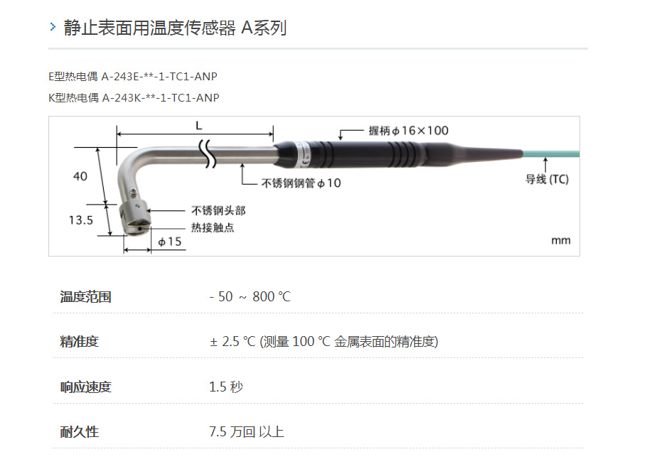 日本安立ANRITSU靜止表面用溫度傳感器 A系列A-243E-01-1-TC1-ASP