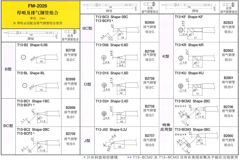 | FM2026-04氮?dú)夂歌F轉(zhuǎn)換組件 (適用于FX950、FX951、FM203、FM204及FM206) | 包括FM2026-02、套筒組件、套筒護(hù)蓋、休眠功能焊鐵架、599B潔咀器、連接線及抗熱墊片(不包括T13焊咀及排氣鋼管組合) |