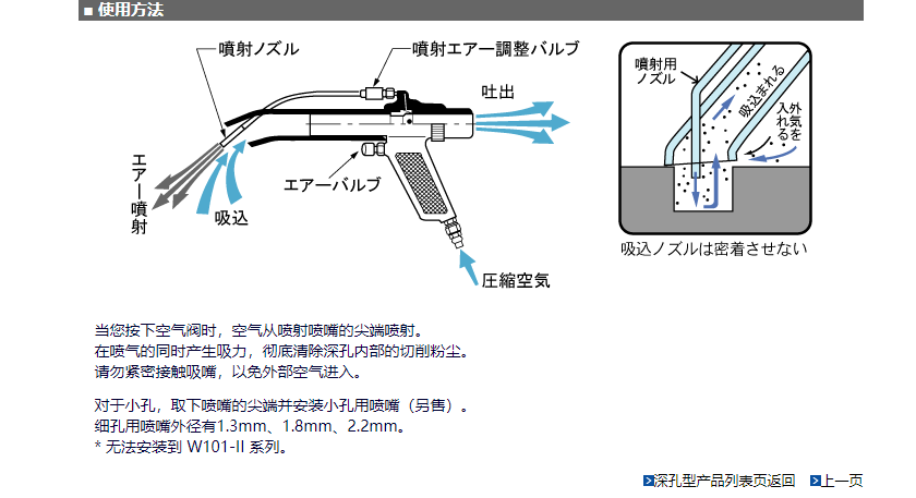 尤其是螺旋噴射式產(chǎn)品,有效利用壓縮空氣作為動力源,槍內(nèi)完全呈圓柱形,無障礙物,完全不用擔(dān)心吸運過程中有物體堵塞內(nèi)部。