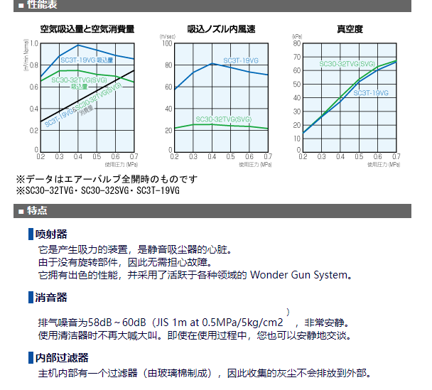 Silent Cleaner SC30-32TVG可以吸入壓縮空氣(compressor air)作為驅(qū)動源。強力收集傳統(tǒng)工業(yè)清潔劑無法充分收集的高粘度油脂、污泥等。非常適合任何工作場所。2級結(jié)構(gòu)/多重過濾器!長時間連續(xù)使用OK!吸力強、降噪的萬能吸塵器。重量:13kg 高度:890mm寬度:450mm吸嘴:外徑:32mm 長度:600mm吸管:內(nèi)徑:32mm,長度:2000mm25升帶腳輪透明罐。
