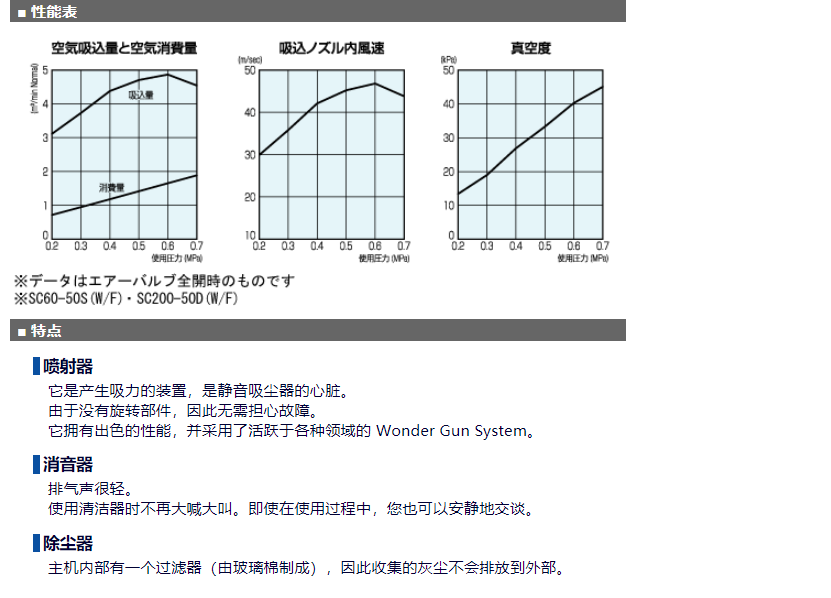 產(chǎn)品簡介: Silent Cleaner SC30-32SVG可以吸入壓縮空氣(compressor air)作為驅(qū)動源。強力收集傳統(tǒng)工業(yè)清潔劑無法充分收集的高粘度油脂、污泥等。非常適合任何工作場所。2級結(jié)構(gòu)/多重過濾器!長時間連續(xù)使用OK!吸力強、降噪的萬能吸塵器。重量:12.5kg 高度:940mm 寬度:450mm吸嘴:外徑:32mm 長度:600mm吸管:內(nèi)徑:32mm 長度:2000m 30L不銹鋼水箱帶腳輪。
