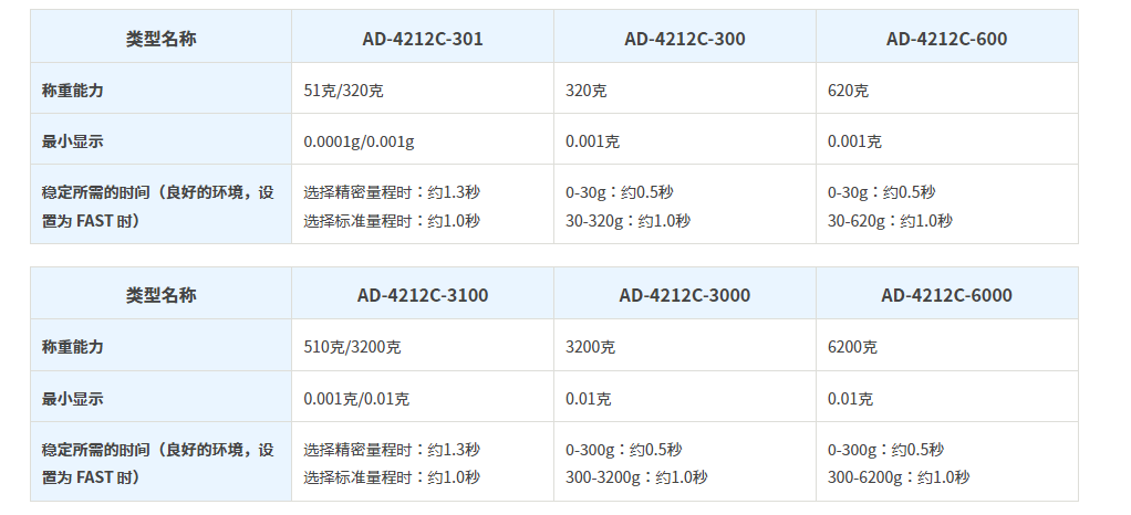 日本進(jìn)口AND艾安得重傳感器AD-4212C用于二次電池、電子零件、醫(yī)藥品、抗蝕劑油墨、涂層劑和油的生產(chǎn)過(guò)程電磁傳感器Electromagnetic digital load cell)? 采用EM-DLC方式,精度高、速度快、結(jié)構(gòu)緊湊。配備C-SHS(Compact-Super Hybrid Sensor),0.5秒高速響應(yīng),每秒50次高速輸出(選擇9600以上波特率時(shí))。稱重?cái)?shù)據(jù)直接傳輸?shù)狡桨咫娔X、PLC、PC等。標(biāo)準(zhǔn)附件電纜10m59 mm 寬的緊湊型稱重裝置,可自由布局防塵/防水稱重裝置IP65將過(guò)氧化氫原液(34%濃度)滴在測(cè)量單元外殼的涂層表面100小時(shí)后,確認(rèn)涂層(環(huán)氧樹脂底涂層+丙烯酸涂層)沒(méi)有翹起或剝落。3000萬(wàn)次只需5mg!EM-DLC AD-4212C-300(重量320g,小顯示1mg)在一年多的時(shí)間內(nèi)完成了3000萬(wàn)次的耐久性測(cè)試。終量程偏差值僅為 5mg(200.005g 以 200g 參考重量顯示),相當(dāng)于 5 個(gè)刻度間隔。
