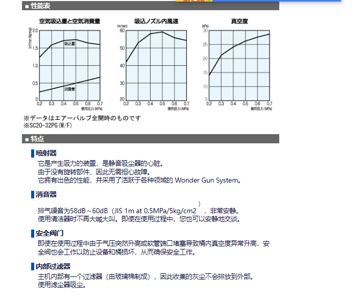 靜音吸塵器SC20-32PG可以吸入壓縮空氣(compressor air)作為驅(qū)動源。強力收集水、油、污泥、谷物、小礫石、金屬碎片等傳統(tǒng)工業(yè)清潔劑無法充分收集的物質(zhì)。非常適合任何工作場所。2級結(jié)構(gòu)/多重過濾器!長時間連續(xù)使用OK!吸力強、降噪的吸塵器。重量 6kg 高度 390mm 寬度 320mm吸嘴:外徑 32mm 長度 400mm吸管內(nèi)徑 32mm 長度 2000mm 適用于20 升提桶罐。單獨準備一個密封容器。SC20-32G帶 20 升油箱,也可提供標準型