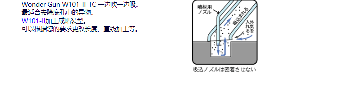 Wonder Gun W101-II-TC 一邊吹一邊吸。適合去除底孔中的異物。W101-II加工成貼裝型。可以根據(jù)您的要求更改長度、直線加工等。