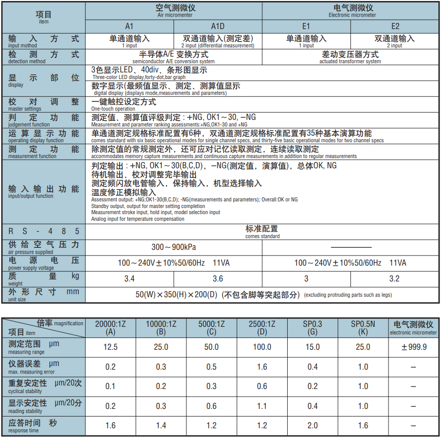 E1是高精度、多功能的單通道電氣測(cè)微儀。