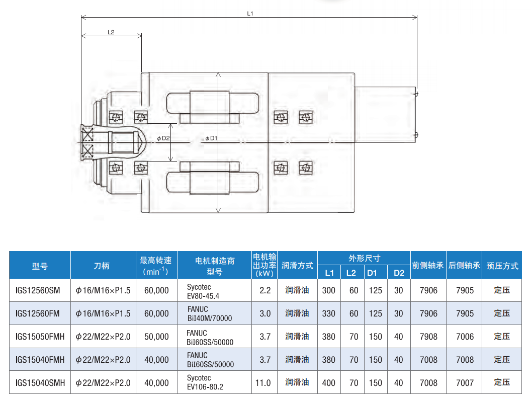 IGS12560SM憑借高精度及高速旋轉(zhuǎn),實(shí)現(xiàn)高精度內(nèi)圓磨削。電機(jī)內(nèi)置規(guī)格的內(nèi)圓磨床用高速主軸??紤]到可能未配備NC控制裝置, 除了FANUC制電機(jī)規(guī)格外, 還備有Syco tec(德國(guó)) 制電機(jī)規(guī)格,可滿足客戶的廣泛需求。IGS12560SM憑借高精度及高速旋轉(zhuǎn),實(shí)現(xiàn)高精度內(nèi)圓磨削。電機(jī)內(nèi)置規(guī)格的內(nèi)圓磨床用高速主軸??紤]到可能未配備NC控制裝置, 除了FANUC制電機(jī)規(guī)格外, 還備有Syco tec(德國(guó)) 制電機(jī)規(guī)格,可滿足客戶的廣泛需求。