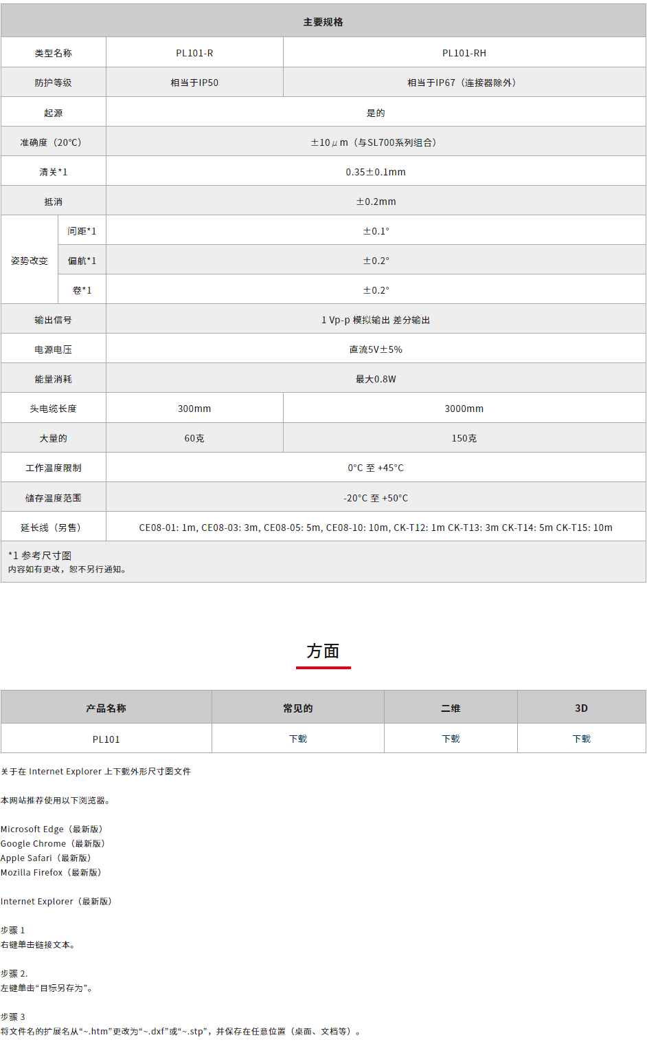 產(chǎn)品簡介: PL101與SL700組合,檢測直線位置和移動距離,并輸出模擬信號。也可與 MJ500/600 系列組合輸出 A/B 相信號。非接觸式測量頭和秤由于采用磁性檢測方式,耐污垢、油污等,抗振動、沖擊能力強??筛鶕?jù)應用選擇各種類型