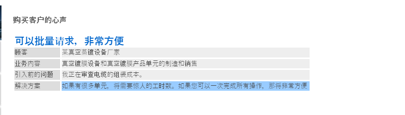 我們將從一個連接器連接到電線的流量計發(fā)貨。消除詢問布線承包商的麻煩。如果指定,也可以安裝中繼電纜,以批量請求,非常方便顧客 某真空蒸鍍設(shè)備廠家 業(yè)務(wù)內(nèi)容 真空鍍膜設(shè)備和真空鍍膜產(chǎn)品單元的制造和銷售引入前的問題 我正在審查電纜的組裝成本。解決方案 如果有很多單元,將需要驚人的工時數(shù)。如果您可以一次完成所有操作,那將非常方便