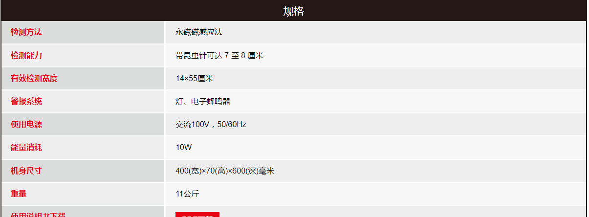 用于檢測(cè)和檢測(cè)各種紡織產(chǎn)品和工業(yè)產(chǎn)品中混入的鐵針、鐵釘、碎片等。