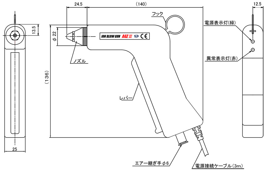 | 選項 | 扁平噴嘴 OAG-F 替換放電針(5 個) DN-W17 延長電纜 2m OAGⅢ-ECAB-L2 延長電纜 4m OAGⅢ-ECAB-L4 延長電纜 6m OAGⅢ-ECAB-L6 控制盒 OAGⅢ-CB |