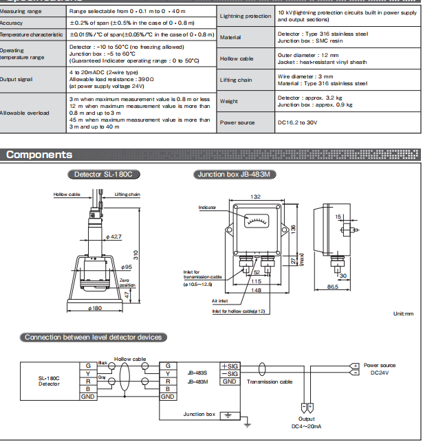 日本jfe污水用浸沒式液位探測器型號 SL-180C