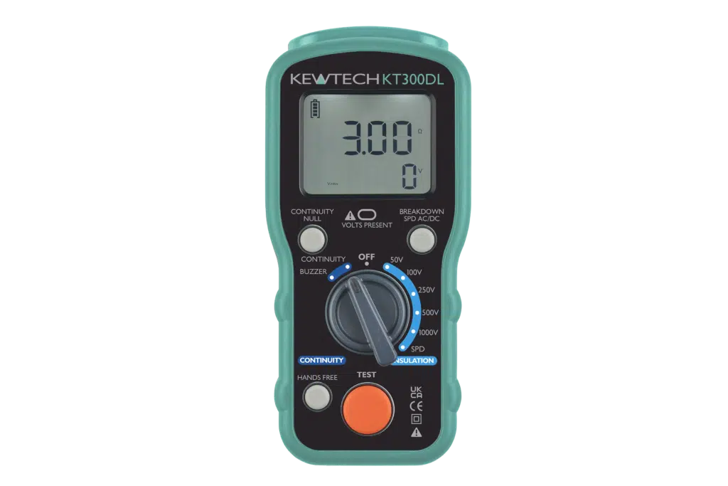KT300 絕緣/連續(xù)性測試儀現(xiàn)已升級為 KT300DL,提供額外的 SPD 測試和 30 K 歐姆連續(xù)性范圍,用于驗證外部導(dǎo)電部件。